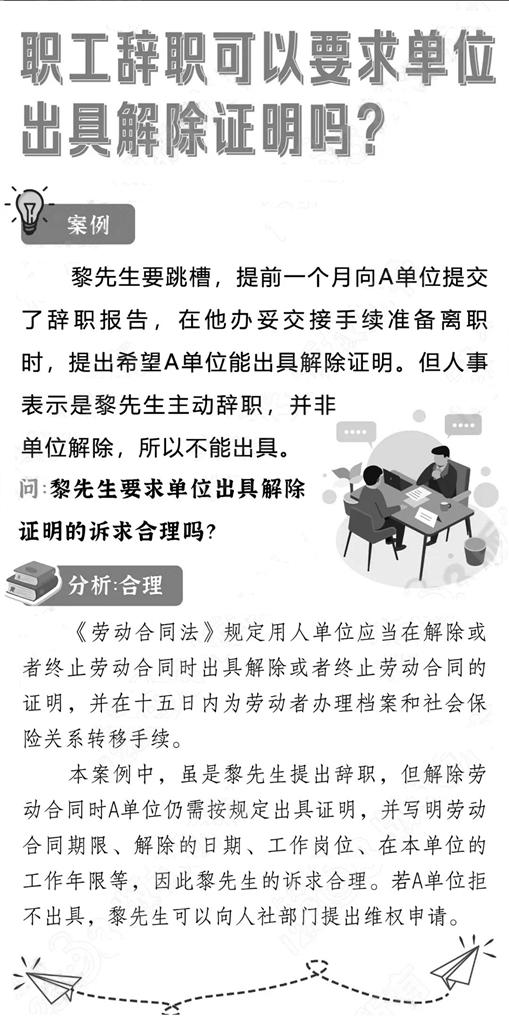 职工辞职可以要求单位出具解除证明吗?