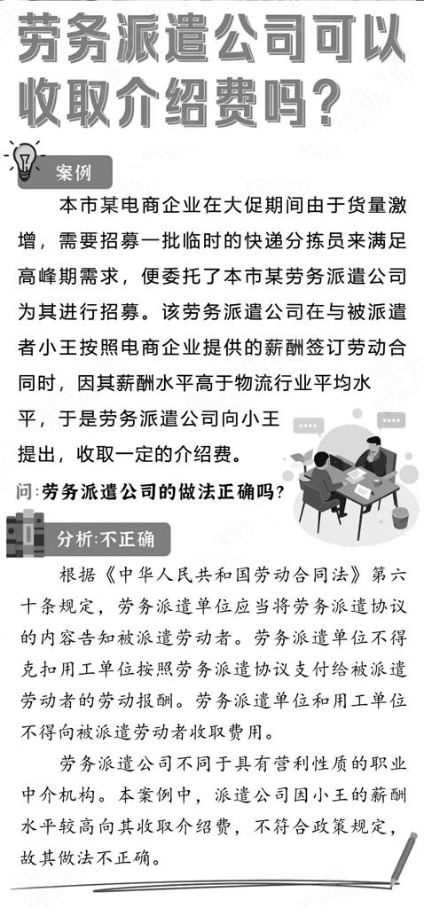 劳务派遣公司可以收取介绍费吗?