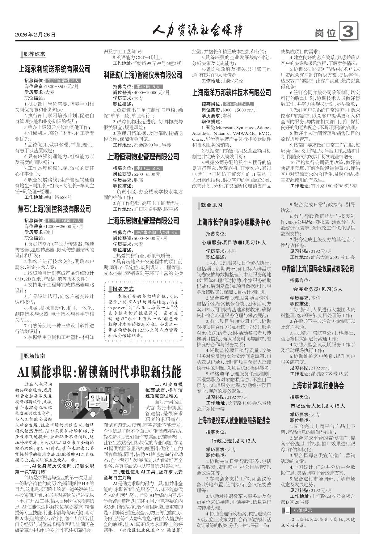 文汇报:今年政府工作报告提到2026年上海要新增就业60万人以上,高校毕业生等青年群体求职问题也一直是社会关注的热点,请问人社部门,2026年会有哪些针对性的政策举措?