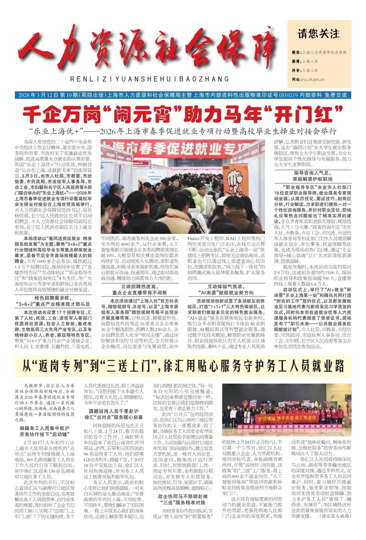 “乐业上海优+”——2026年上海市春季促进就业专项行动暨高校毕业生择业对接会举行