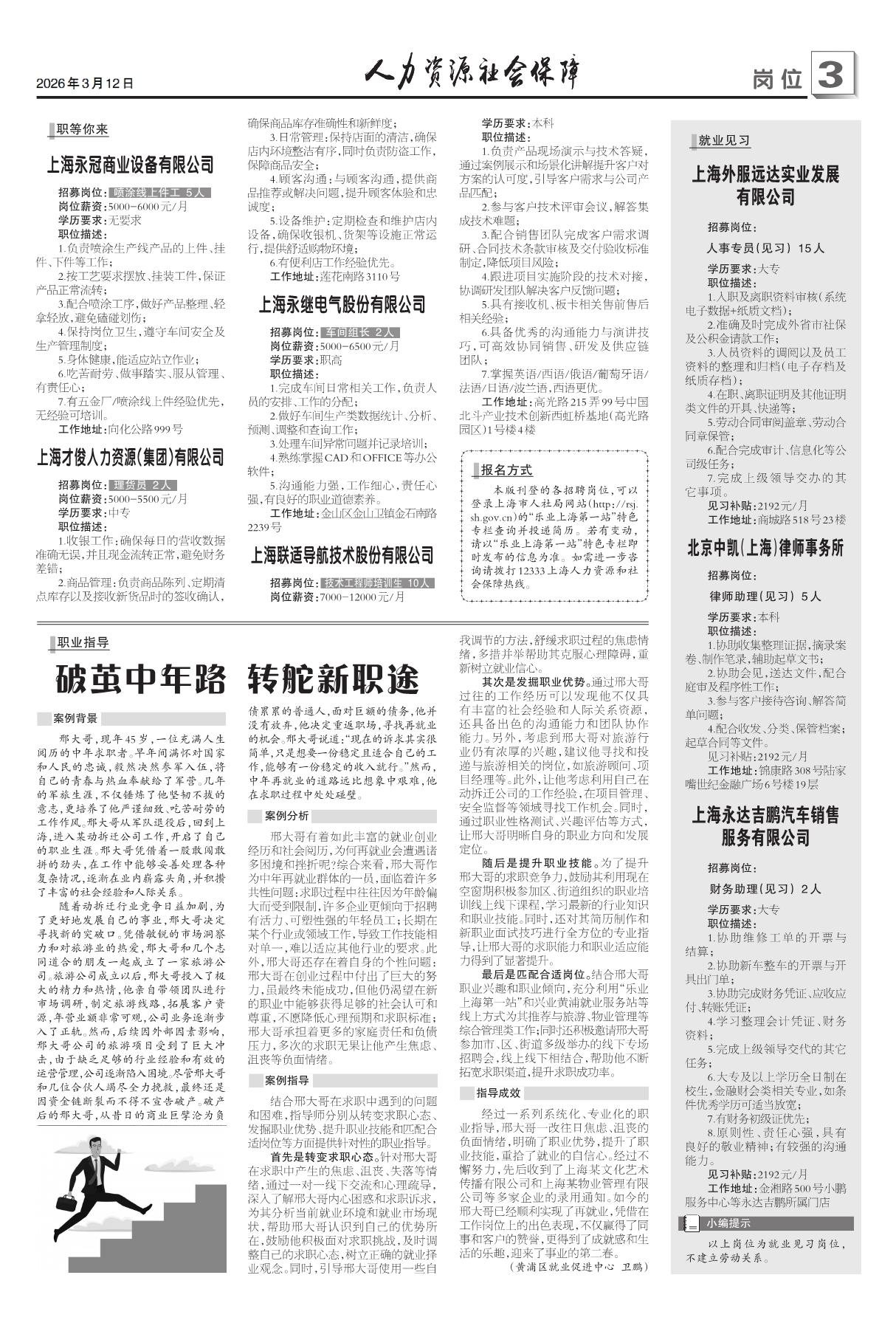 为深入贯彻党的二十届四中全会和中央经济工作会议精神,落实党中央、国务院和市委、市政府关于实施就业优先战略、促进高质量充分就业的决策部署,巩固“乐业上海优+”行动实效,积极营造“乐业在上海,成就新未来”的浓厚氛围,3月3日,由市人社局、市教委、市经信委、市民政局、市退役军人事务局、市总工会、市妇联和长宁区人民政府等8部门联合举办的“乐业上海优+”——2026年上海市春季促进就业专项行动暨高校毕业生择业对接会在上海世贸商城举行。市人力资源社会保障局党组书记、局长杨佳瑛,长宁区人民政府区长刘平启动招聘会。市人力资源社会保障局副局长李炜,长宁区人民政府副区长马士威分别致辞。