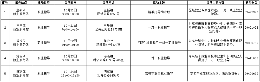 活动类别:政策咨询(宣传)、职业指导、创业指导、代理招聘