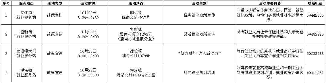 活动简介:为高校毕业生、长期失业青年及其他有求职需求的人员提供岗位信息、求职登记、政策咨询等就业服务。