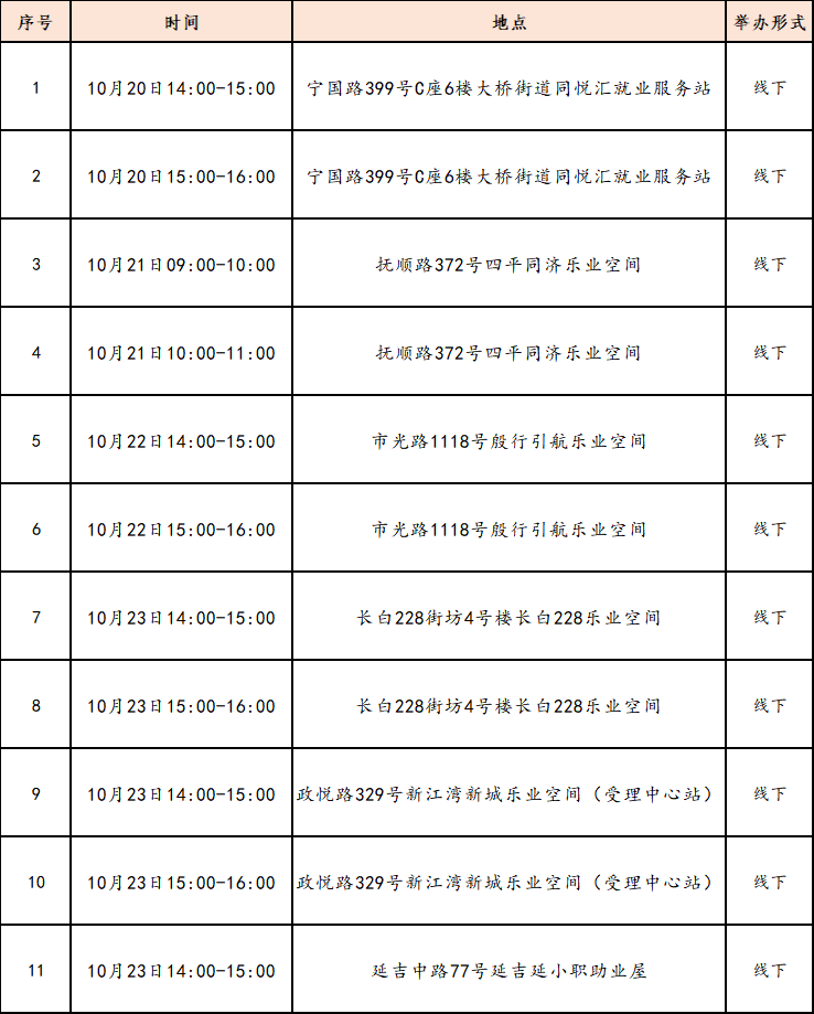 “15分钟就业服务圈”社区就业服务站点建设市政府实事项目作为人社部门常态化政府开放活动之一,我们将持续发布精彩服务内容,今天为大家带来黄浦区、长宁区、杨浦区、闵行区、青浦区、崇明区、嘉定区、松江区近期就业活动安排!