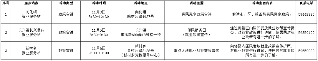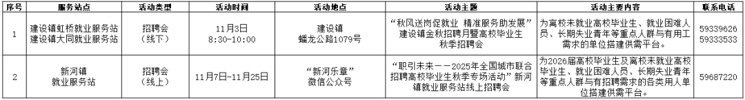 活动简介:为高校毕业生、长期失业青年及其他有求职需求的人员提供岗位信息、求职登记、政策咨询等就业服务。