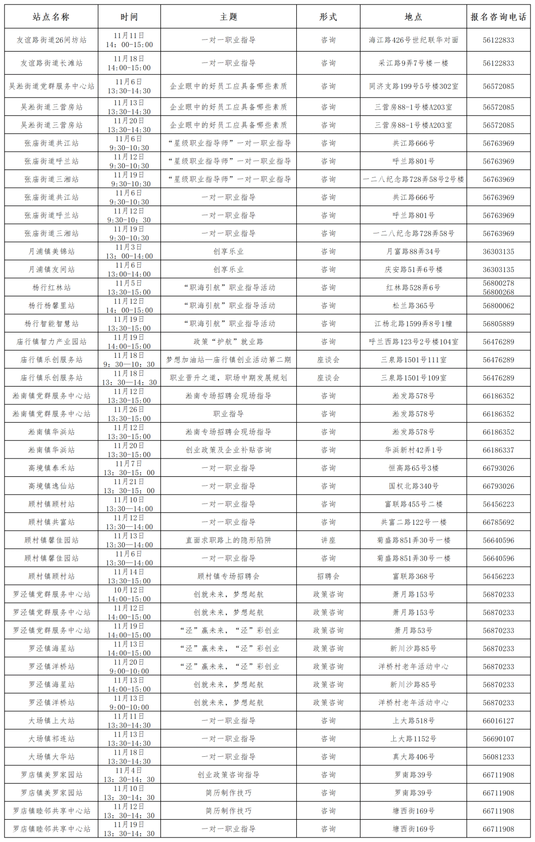 宝山区“15分钟就业服务圈”活动排片表