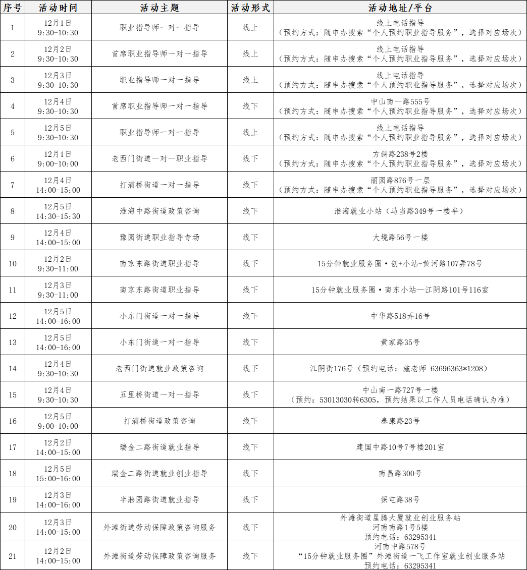 “15分钟就业服务圈”社区就业服务站点建设市政府实事项目作为人社部门常态化政府开放活动之一,我们将持续发布精彩服务内容,今天为大家带来黄浦区、长宁区、闵行区、嘉定区、青浦区、松江区、崇明区、杨浦区、宝山区、金山区近期就业活动安排!