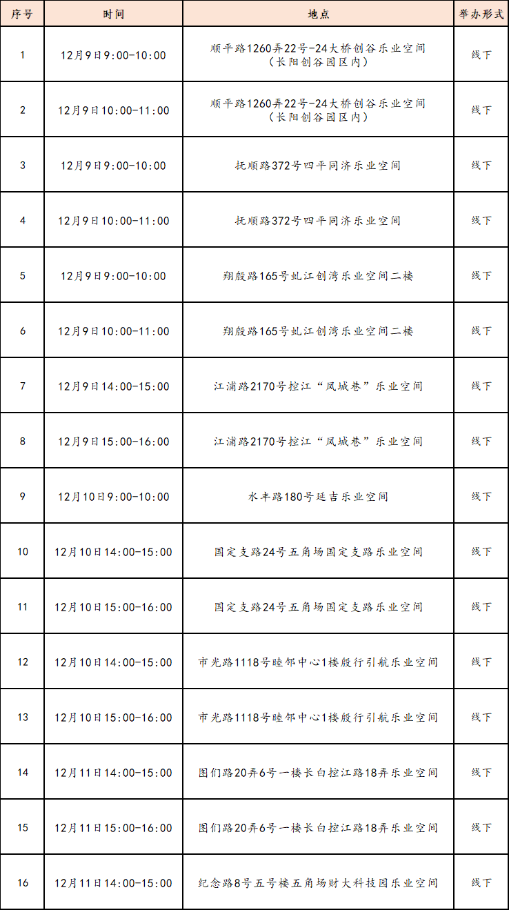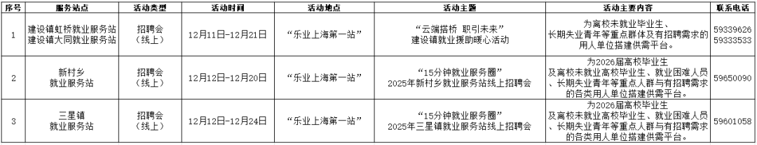 “15分钟就业服务圈”社区就业服务站点建设市政府实事项目作为人社部门常态化政府开放活动之一,我们将持续发布精彩服务内容,今天为大家带来静安区、杨浦区、黄浦区、长宁区、闵行区、青浦区、崇明区近期就业活动安排!