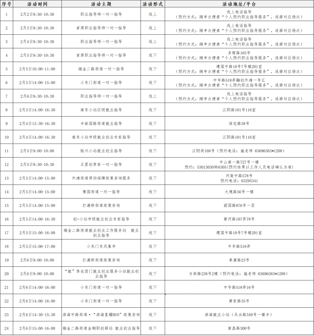 活动地点:曹杨社区就业服务站(杏山路317号)