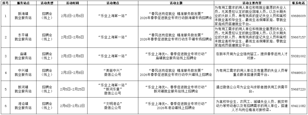 活动内容:“春风送岗促就业 精准服务助发展” 2026年真如镇街道二月线上专场招聘活动