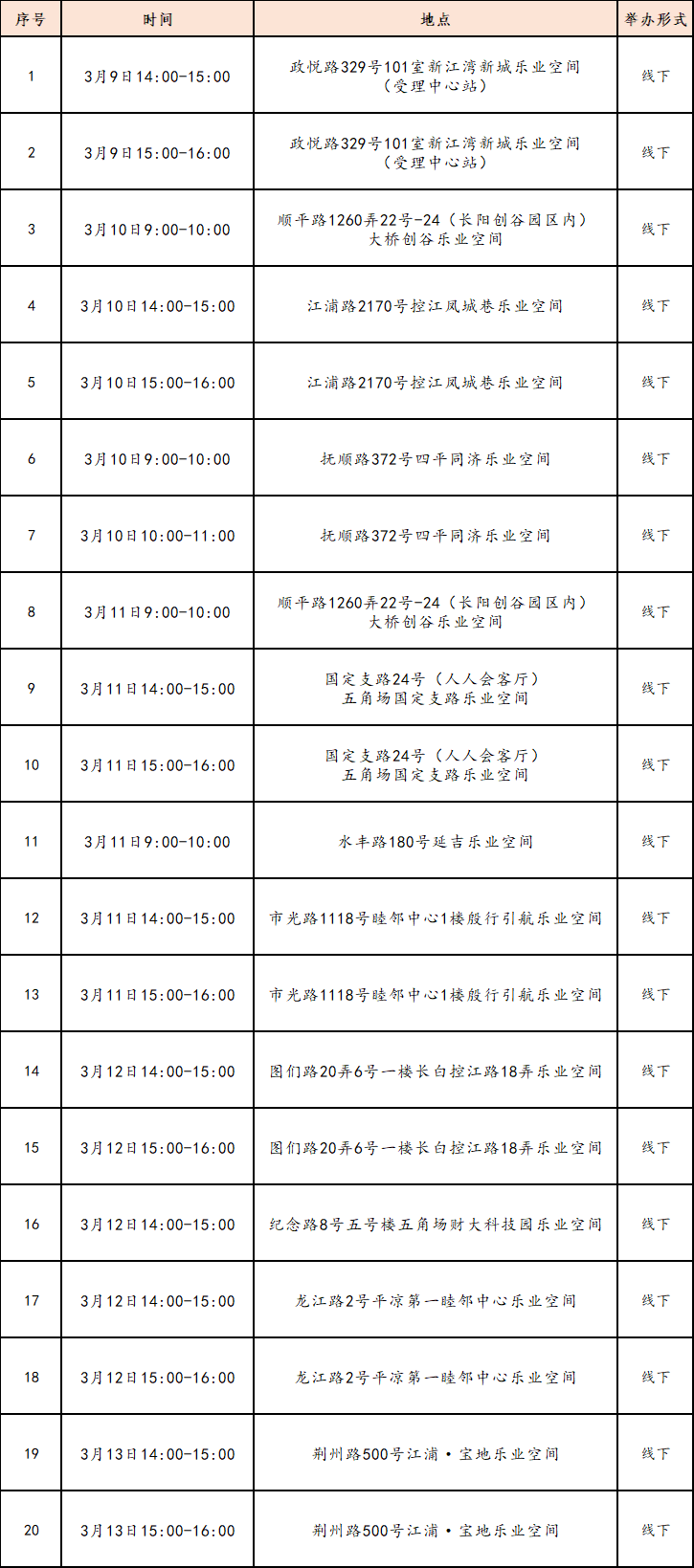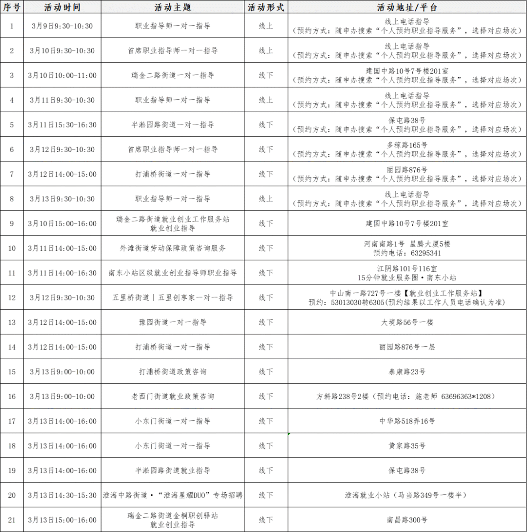 活动地点:桃浦东部党群服务中心社区就业服务站(真南路822弄450号)