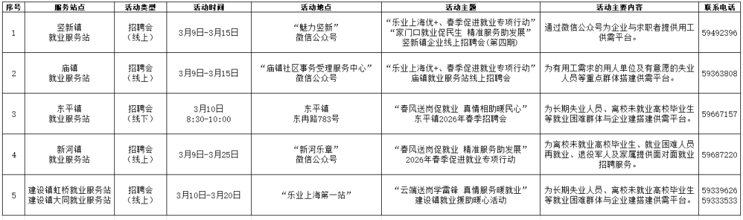 活动内容:2026年春季促进就业专项行动佘山镇专场招聘会