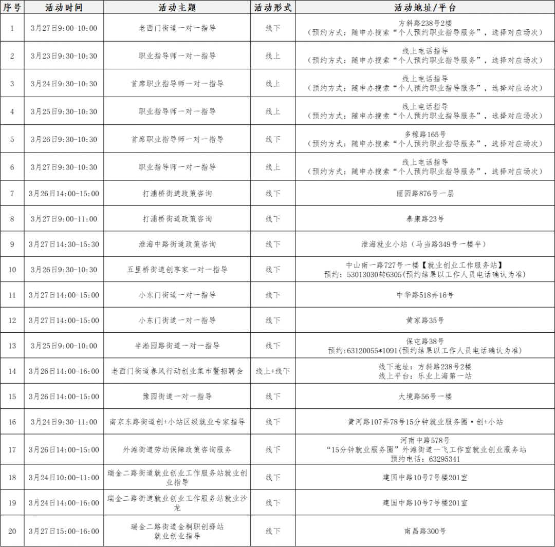 活动地点:桃浦东部党群服务中心社区就业服务站(真南路822弄450号)