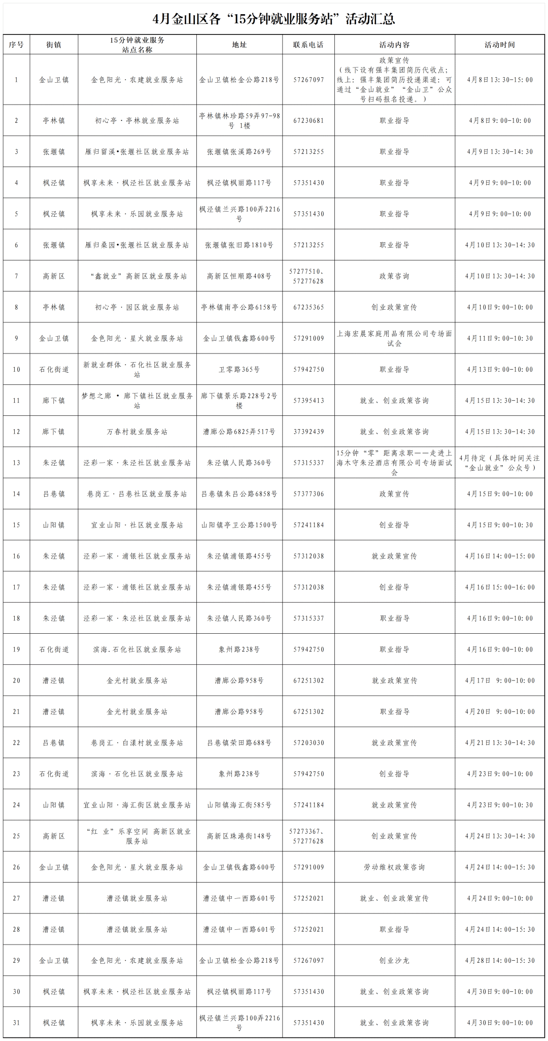 “15分钟就业服务圈”社区就业服务站点建设市政府实事项目作为人社部门常态化政府开放活动之一,我们将持续发布精彩服务内容,今天为大家带来黄浦区、普陀区、杨浦区、金山区、崇明区、长宁区、闵行区、松江区、嘉定区、青浦区近期就业活动安排!