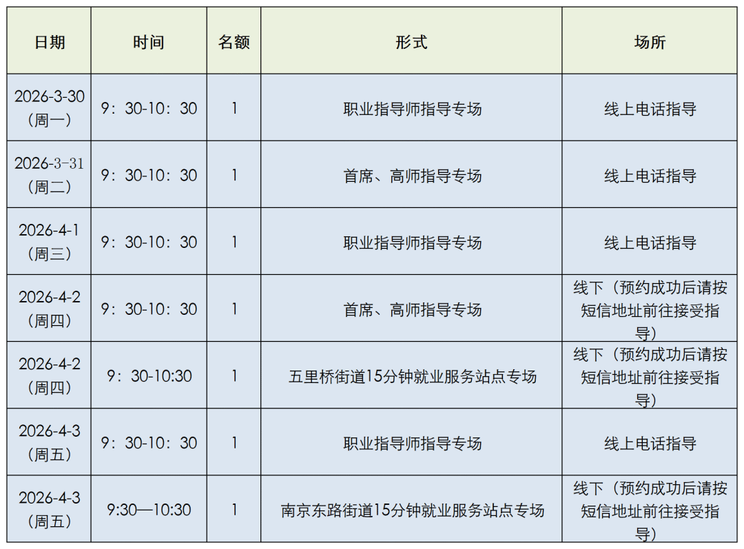 活动内容:一对一专家职业指导(需提前预约:66267866-9006)