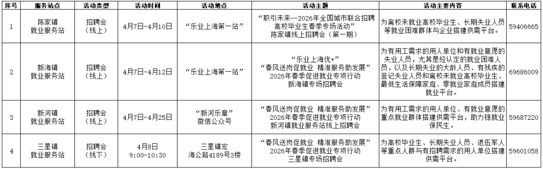 活动地点:桃浦东部党群服务中心社区就业服务站(真南路822弄450号)