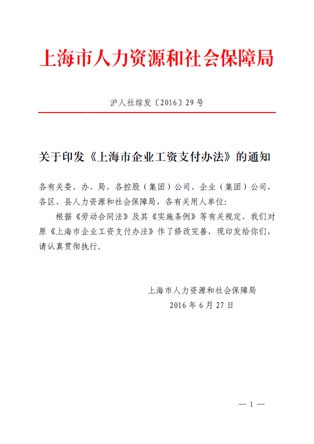 二十七、本办法自2016年8月1日起执行,有效期5年。原《关于印发〈上海市企业工资支付办法〉的通知》(沪劳保综发〔2003〕2号)同时废止。