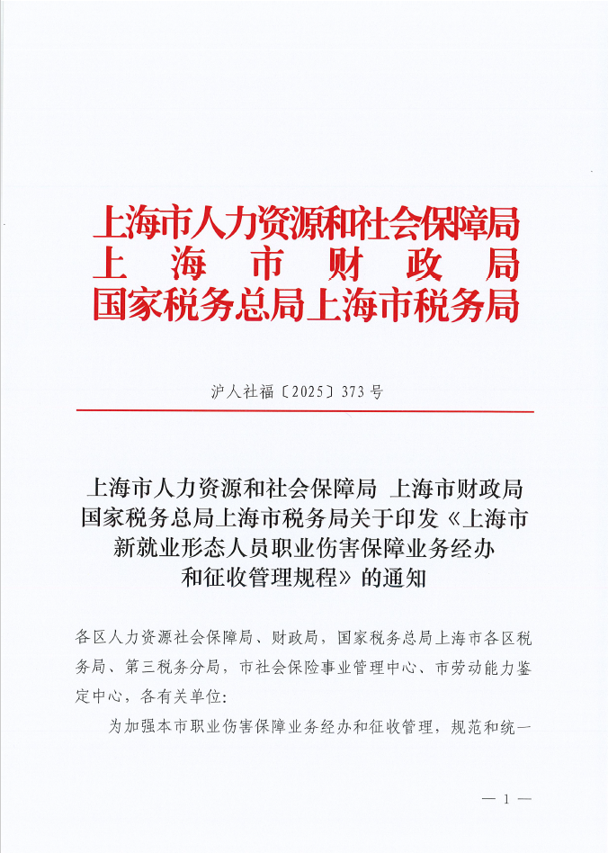 上海市人力资源和社会保障局 上海市财政局 国家税务总局上海市税务局关于印发《上海市新就业形态人员职业伤害保障业务经办和征收管理规程》的通知