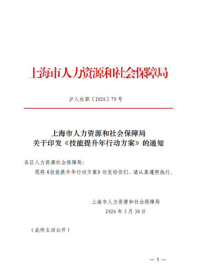 上海市人力资源和社会保障局关于印发《技能提升年行动方案》的通知