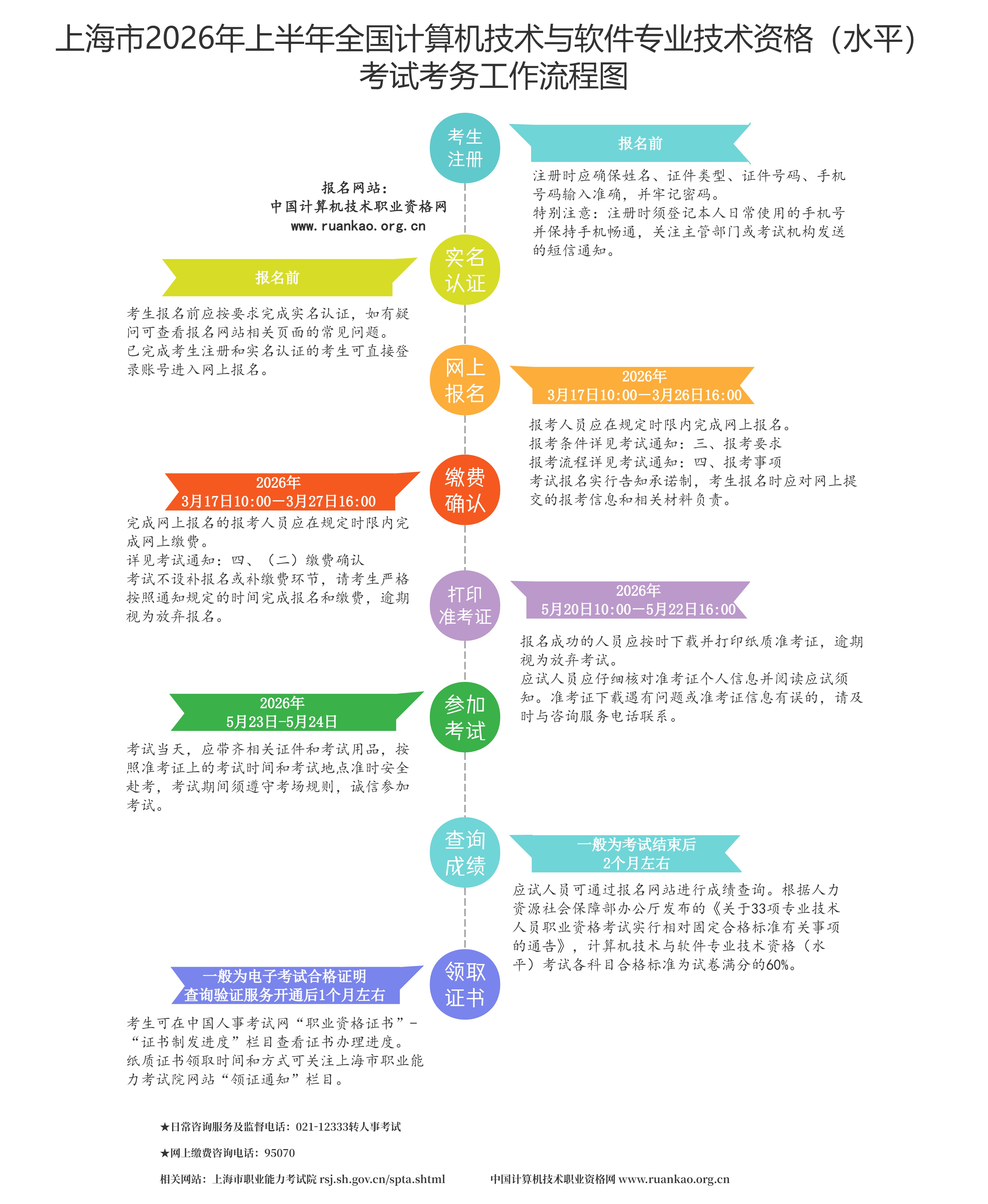 根据全国计算机专业技术资格考试办公室《关于2026年度计算机技术与软件专业技术资格(水平)考试工作安排及有关事项的通知》(计考办〔2026〕1号),结合本市实际,现将上海市2026年上半年全国计算机技术与软件专业技术资格(水平)考试有关事宜通知如下: