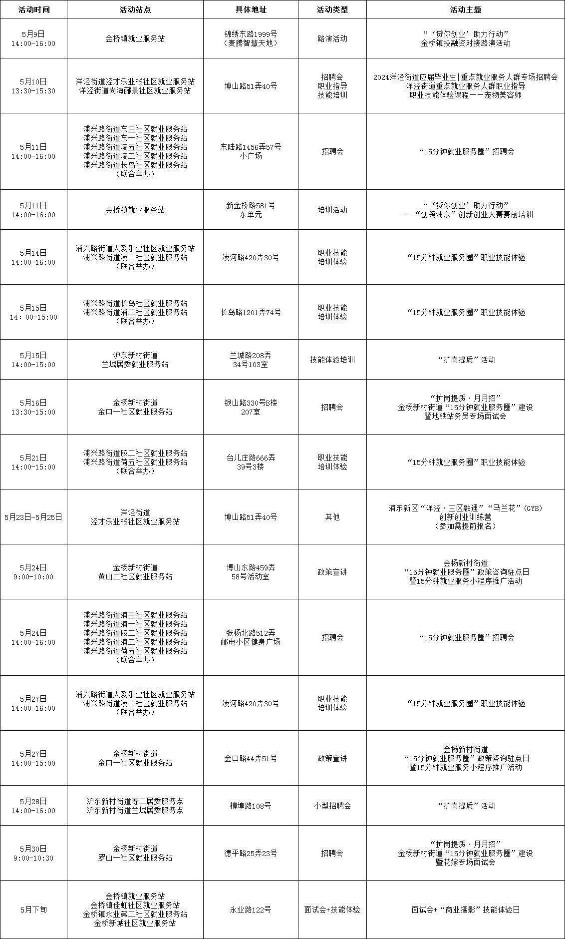 浦东新区街镇就业服务站点活动