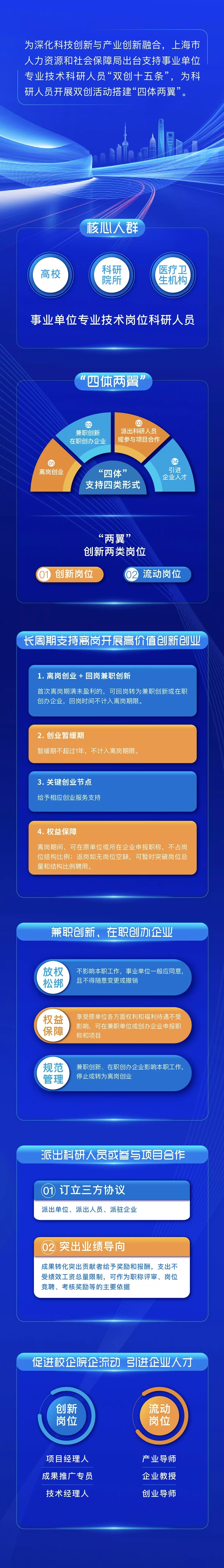一图了解本市支持事业单位专业技术科研人员“双创十五条”