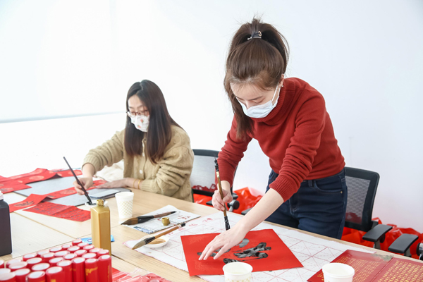 欢乐“游”环节,大家展现了丰富的才艺节目,尽情地参与组合游戏,书法爱好者们大展身手,挥毫泼墨书写福字,送上新春美好祝福,浓浓的年味为留沪职工一解思乡之情。