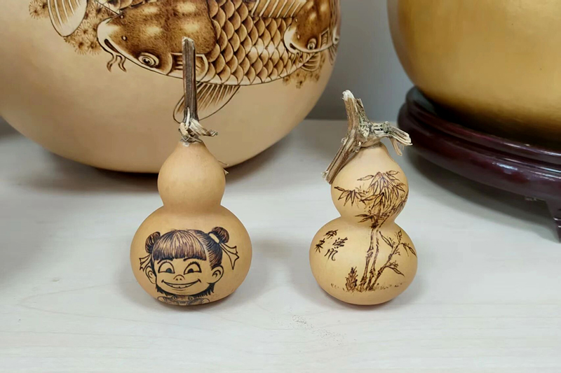 郭海洋看到了这份天赋,给了小张一台烙画机和几只葫芦,鼓励他回家继续创作。每画完一个,小张的父母都会将其展示在壁柜里,如今已经有了十几只葫芦。“如果画得好还能卖出去,所以我很珍惜这个机会。”小张说。