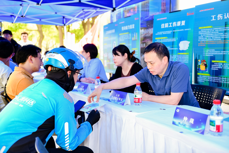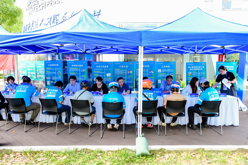 为深入开展工伤保险法律法规和新就业形态从业人员职业伤害保障政策的宣传普及工作,进一步提升广大劳动者安全意识和维权能力,10月15日下午,徐汇区人社局在宜山路900号开展了“走进奔跑者”工伤保险主题宣传活动。