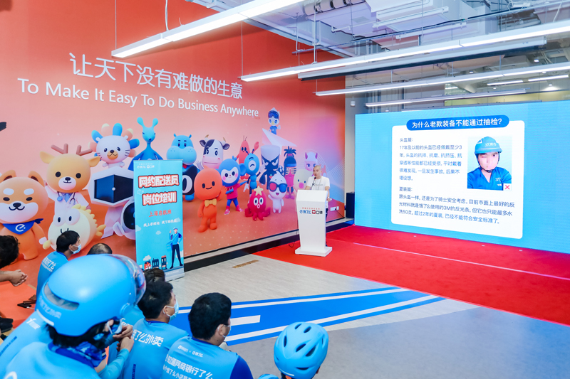淘宝闪购-饿了么作为人社部第二批新就业形态技能提升和就业促进项目的试点单位,在全国各地开展了大量的各类岗位培训和职业技能提升项目。其中,在普陀区人社局的支持下,开设城市骑士网约配送员岗位培训班,累计开设培训班64期,参训学员1350人,帮助城市骑士们掌握配送技能实现快速上岗。自2022年在普陀区首届职业技能竞赛中首设网约配送员展示型竞赛项目以来,每年通过市、区级各类展示型职业技能竞赛活动,为城市骑士搭建展示专业素养与服务能力的舞台。