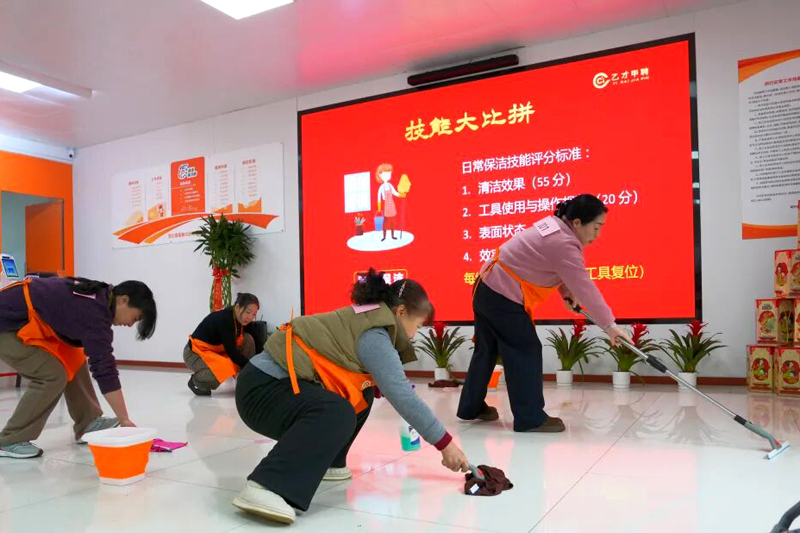 1月31日,家政服务技能比拼活动在闵行区零工市场(莘庄站)举行。本次技能比拼分为玻璃清洁、收纳整理、日常保洁3个项目,全面考察参赛员工的专业素养与实操能力。
