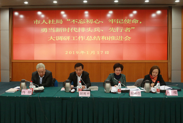 1月17日,我局召开“不忘初心、牢记使命,勇当新时代排头兵、先行者”大调研工作总结和推进会。局领导、机关各处室、局属各单位负责人和大调研联络员参加会议。局大调研工作领导小组常务副组长、局党组副书记纪维萱同志主持会议。就业处、开发处、养保处、市社保中心、市劳动保障监察总队进行交流发言。市政府副秘书长、局大调研工作领导小组组长、局党组书记、局长赵祝平同志传达市委大调研总结和推进会议精神,总结2018年局大调研工作,动员部署2019年工作。
